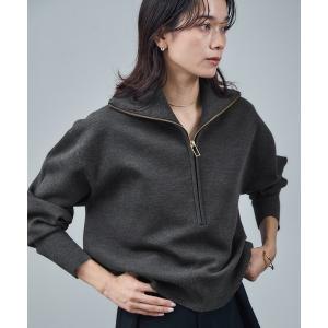 ニット セーター ハーフジップウールニットスウェットプルオーバー レディース