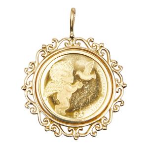 エンジェルコイン K24(純金 K24) 1/25オンス エンジェルコイン K18枠付きペンダントトップ