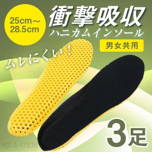 ハニカムインソール 3足セット ハニカム構造 イエロー ブラック ムレ防止 インソール 中敷き 衝撃吸収 疲労軽減 抗菌防臭 立ち仕事 ウォーキング 男女兼用
