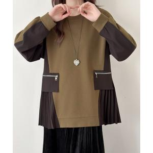 tシャツ サイド異素材プリーツドッキングプルオーバー レディース