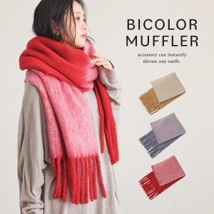 マフラー レディース アクセサリー ファッション雑貨 小物 ストール ショール 配色 バイカラー フリンジ 秋 冬 オシャレウォーカー「メール便不可」「30」