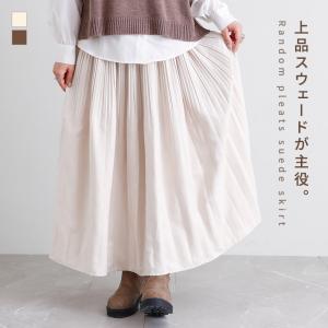 スカート レディース ボトムス ミモレ丈 プリーツスカート フレアスカート ランダムプリーツ スエード 秋 冬 オシャレウォーカー「メール便不可」「20」