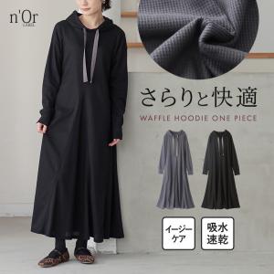フレアワンピース ロング丈 レディース ワンピ 長袖 フード付き 吸水速乾 イージーケア ワッフル生地 体型カバー 春 秋 「メール便不可」「30」