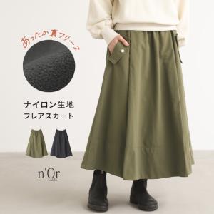 フレアスカート レディース ボトムス ロングスカート 裏フリース あったか ナイロンスカート タック ポケット マキシ丈「メール便不可」「20」