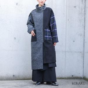コート レディース アウター ロングコート スタンドコート 長袖 スタンドカラー 異素材 アシンメトリー 裏地付き 50代 秋 冬「送料無料」「メール便不可」「60」