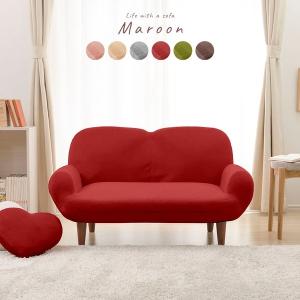 コンパクトソファー/ローソファー 〔レッド・ブラウン脚〕 肘付き 2人掛け 脚付き 14段階リクライニング 日本製