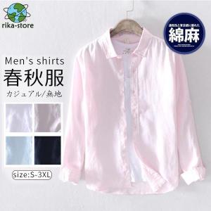 リネン シャツ メンズ 麻 麻シャツ リネンシャツ カジュアルシャツ 綿麻シャツ 春夏 長袖シャツ ビジネス 夏シャツ 通勤 開襟 シャツ ブラウス