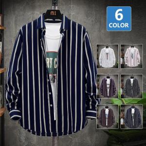 カジュアルシャツ メンズ おしゃれ ストライプシャツ 長袖シャツ ボタンダウンシャツ スリム トップス 紳士服 秋 春