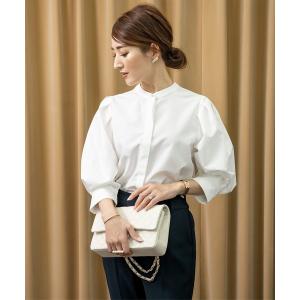 ブラウス シャツ バンドカラーパフスリーブブラウス レディース