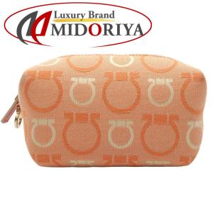 Salvatore Ferragamo サルヴァトーレフェラガモ 化粧ポーチ ガンチーニ キャンバス オレンジ/180414【中古】