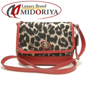 COACH コーチ F24103 ショルダーバッグ キャンバスxレザー レオパード レッド アウトレット レディース /253157【中古】