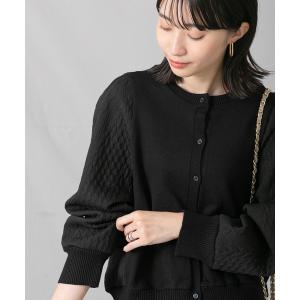 カーディガン 箔プリントケーブルVネックカーディガン レディース