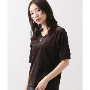 tシャツ ベロアボーダー5分袖カットソー レディース