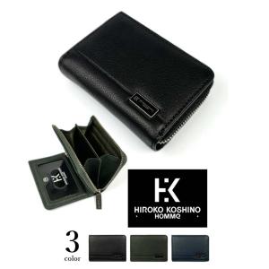 コインケース メンズ 本革 HIROKO KOSHINO ヒロコ コシノ パスケース付き L字ファスナー小銭入れ ソフトリアルレザー