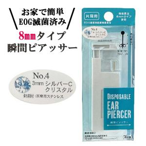 片耳 ピアッサー クリスタル EOG 滅菌済 医療機器製品 ロングタイプ 3mm シルバーC 医療用ステンレス 針 日本製