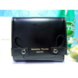 送料無料 サマンサタバサ ロゴ入 カッティング デザイン 牛革 二つ折り財布 折財布 ミニ財布 黒 新品 証明書付 包装無料 開運 金運up ユニセックス