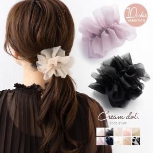 【最大32%OFF×全品送料無料】シュシュ 軽い ボリューム オーガンジー ギャザー 透け感 無地 ドット フリル 大人 フェミニン ブラック