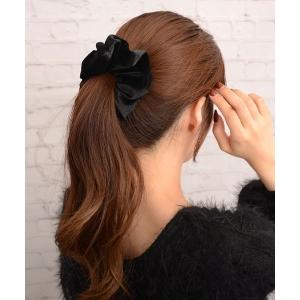 【最大32%OFF×全品送料無料】シュシュ リボン ベロア ビッグリボン 大きめ アシンメトリー ボリューム ヘアアクセサリー ヘアゴム 髪留め