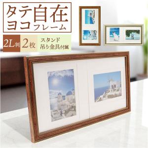 フォトフレーム 2L 2面 通販 万丈 タテ・ヨコ自在フレーム フォト フレーム フォトスタンド 写真立て 写真 スタンド 2枚 横長 縦長 壁掛け フォトフレーム