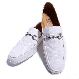 ビット ローファー レザー クロコ 型押し ホワイト シルバービット 国産 牛革 大人 革靴 紳士靴 メンズ シューズ Bit Lofer バジョルゴ BajoLugo オーダー