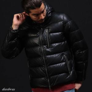 ラム シープ スキン レザー ダウンジャケット フード フーディー フーデット メンズ