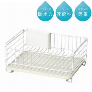 水切りラック 珪藻土トレー 水切りバスケット 1段 ホワイト スキット HB-4985 速乾 水切り トレイ 吸水 おしゃれ 水切り ポケット付き パール金属
