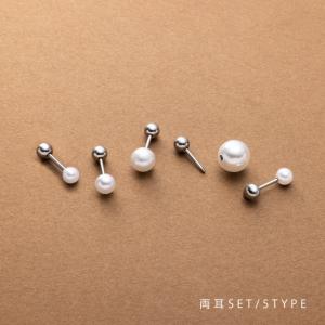 サージカルステンレス ピアス 金属アレルギー つけっぱなし 両側 ネジロック式 キャッチ パール 5サイズ 両耳用