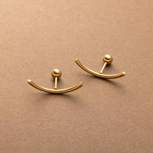 サージカルステンレス ピアス 金属アレルギー つけっぱなし スマイルモチーフ カーブ 変形 メタル ネジロック式
