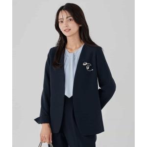 ジャケット ノーカラージャケット 「洗える/ストレッチ/セットアップ対応」ダブルクロスVネックノーカラージャケット レディース