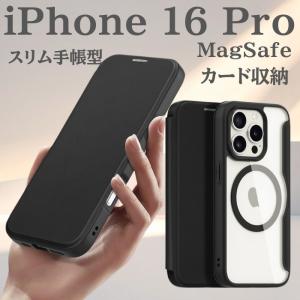 スマホケース iPhone16Pro ブラック 手帳型 TPU ストラップホール ワイヤレス充電 MagSafe スタンド付き カード収納 リング モノトーン 人気 シンプル
