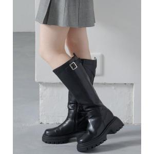 ブーツ 「新色追加/レザー&スエード」ベルトロングブーツ レディース