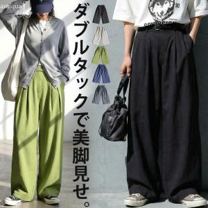 ワイドパンツ レディース 無地 ダブルタック ロング丈 送料無料・100ptメール便可