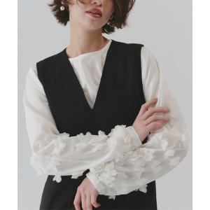 ブラウス シャツ チュールフラワーブラウス レディース
