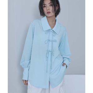ブラウス シャツ ビッグカラーフロントリボンブラウス レディース