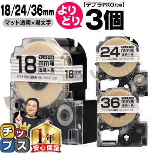 テプラPRO用互換 キングジム対応 自由選択 3個 マット透明/黒文字 18mm/24mm/36mm(テープ幅) 互換テープSB18T SB24T SB36T