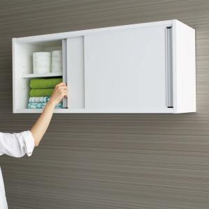 光沢仕上げ吊り戸棚 横型引き戸タイプ 幅90cm高さ40cm トイレ 洗面所 ランドリー収納 洗面所収納 隙間収納 631205