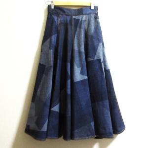 美品 DSQUARED2 ディースクエアード フレア デニムロングスカート S72MA0868 サイズ38 インディゴ レディース 古着 中古