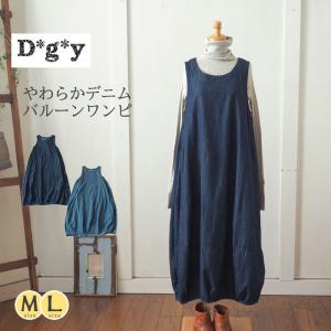Dgy ディージーワイ オールシーズンソフトデニムノースリーブワンピース やわらかデニム袖なしロングワンピース レディース バルーン ナチュラル 秋 冬