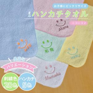 |名入れ 無料 刺繍|タオルハンカチ 綿100% 約20×20cm 5色 ミニハンカチ 刺繍 /ニコニコ2/ 記念品 プレゼント 名入れ刺繍 入園祝い 幼稚園 保育園 誕生日 爆買
