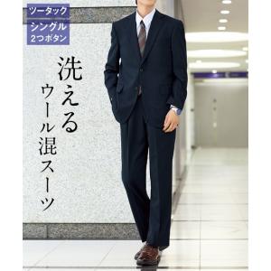 スーツ 背抜き 洗えるウール混 アジャスター付 シングル2つボタン+ツータックパンツ A5-BB8 大きいサイズ メンズ ニッセン