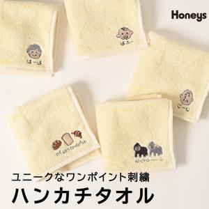 ハンカチ タオルハンカチ ミニタオル 綿100% 刺繍 アニマル柄 ユニーク フェミニン オールシーズン レディース Honeys ハニーズ ハンカチタオル