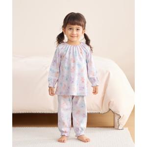 パジャマ のびのび腹巻付き毛玉ができにくいスムースガーリー長袖パジャマ(花うさぎ・テディ) キッズ 子供 女の子