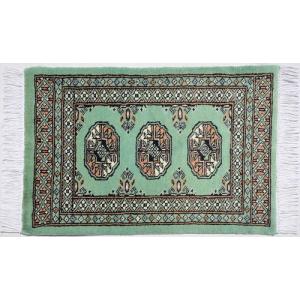 パキスタン絨毯 ウール100% 手織り絨毯 ムガール 玄関マット 約44×66cm グリーン