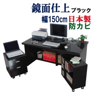 デスク 幅150cm 奥行74 高さ72 3点セット(机/チェスト/ワゴン) パソコンデスク 収納 学習机 おしゃれ ハイタイプ 木製 PC つくえ