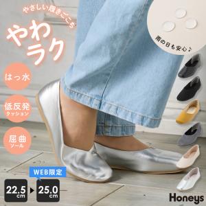 靴 パンプス レディース 黒 スクエアトゥ やわラク はっ水 屈曲ソール フラットヒ Honeys ハニーズ やわラクはっ水スクエアパンプス