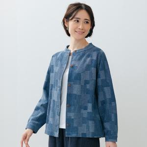 ジャケット アウター レディース おしゃれ 春夏 ミセス シニア ファッション 40代 50代 60代 70代 パッチワーク風ジャカード織ジャケット