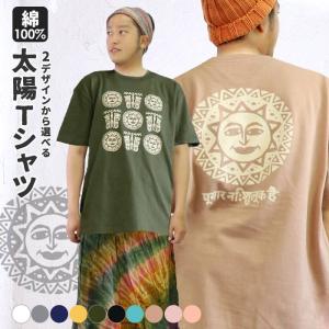 エスニック 半袖 太陽 Tシャツ アジアン タイ 仏足 ファッション レディース メンズ ユニセックス オリジナルデザイン シルクスクリーン (1.5)