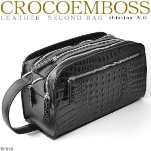 A.G.クロコ型押し牛革トリプルファスナーセカンドバッグ IS-016 ブラック Christina