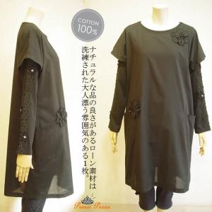 プリンチペッサ princi pessa ローンシャンブレーチュニックワンピ 綿100% 洗える 日本製 レディース チュニック プルオーバー ワンピース