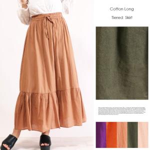 裏地付き♪コットンロングティアードスカート/ローン/無地/フレア/マキシスカート
